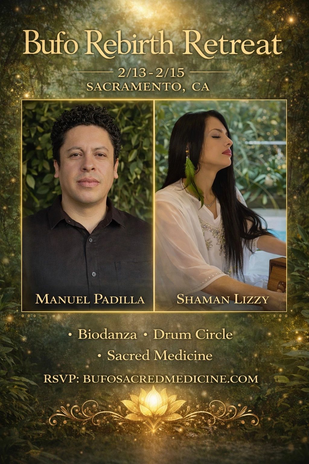 Guided by Manuel Padilla and Shaman Lizzy, Awaken the Heart is a deeply immersive retreat weaving Bufo ceremonies, Biodanza, sound healing, and integration work in a sacred container of love and balance.